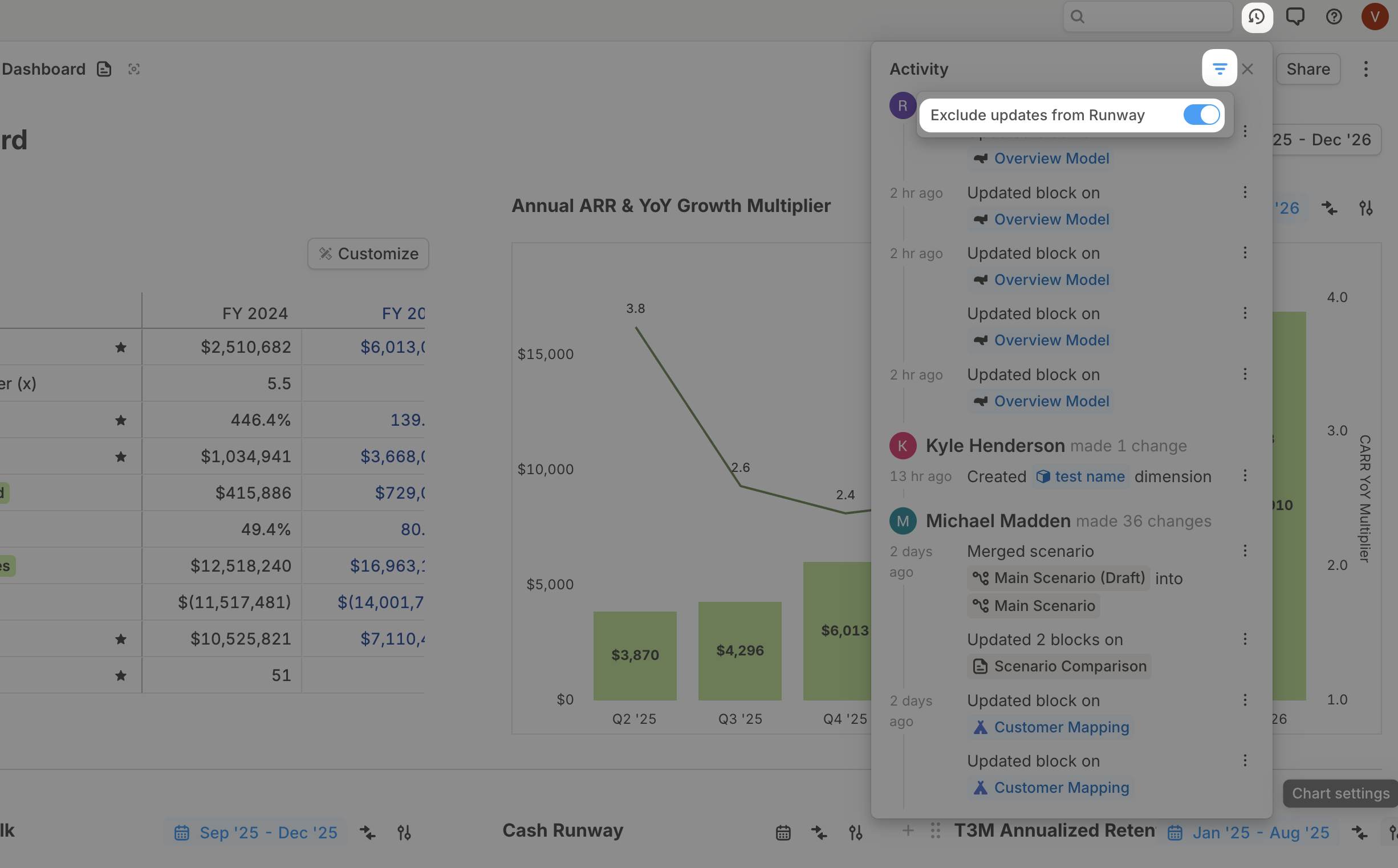 The Activity History now filters out background syncs and automated Runway actions by default.